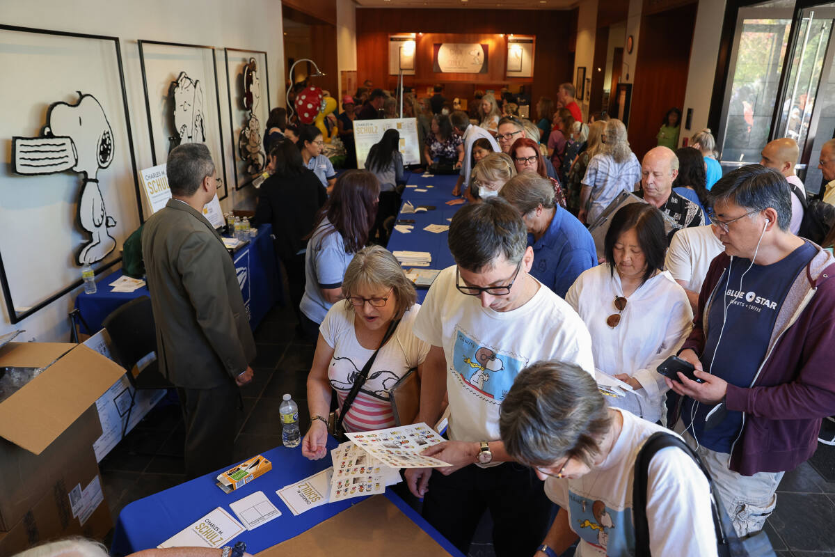 September 30, 2022, the U.S. Postal Service recognized the centennial birth of cartoonist Charles M. Schulz with a first-day-of-issue ceremony, unveiling a pane of 20 new Forever stamps at the Charles M. Schulz Museum and Research Center.